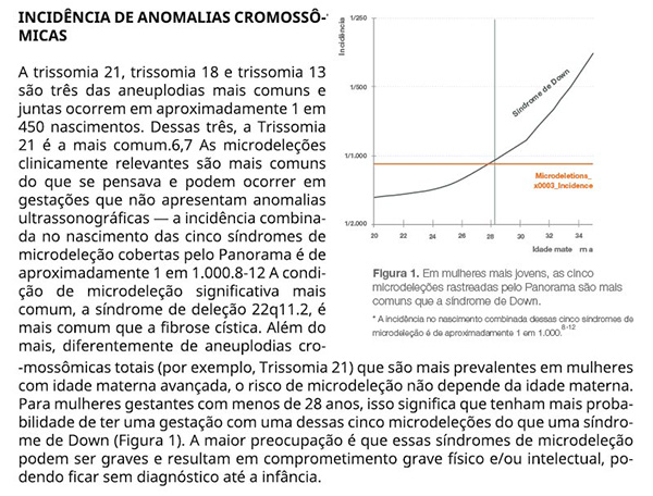 O estudo de validação2 e o estudo de validação clínica1 do Panorama tinham uma grande coorte de mulheres pertencentes à população de gestantes geral e o desempenho equivalente e os VPPs foram observados para coortes de baixo risco e alto riscos. Além disso, como as microdeleções não dependem da idade materna e de outros fatores de risco tradicionais, o Panorama poderia ser uma ferramenta útil para a população de gestantes geral.