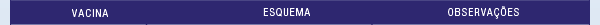 Vacina, Esquema e Observação. Cabeçalho da tabela.