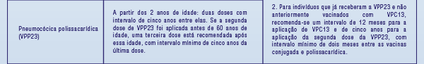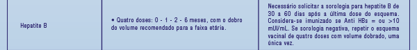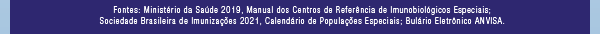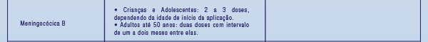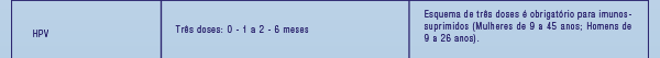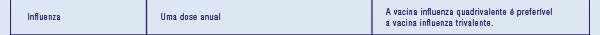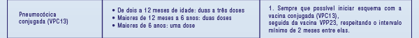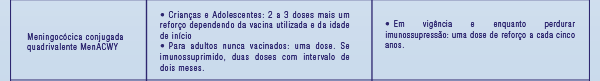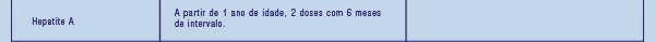 Vacinas recomendadas, tabela.